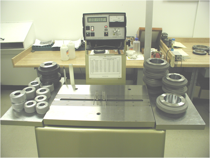 這是一臺(tái)在全球很多校準(zhǔn)實(shí)驗(yàn)室采用的標(biāo)定環(huán)規(guī)的計(jì)量設(shè)備??梢杂糜跈z定ASME X,XX,XXX級(jí)精度的環(huán)規(guī),相當(dāng)于可以檢定國(guó)內(nèi)二等環(huán)規(guī)。 通過一整套完善的量值傳遞機(jī)構(gòu)可以快速精確的找到環(huán)規(guī)的直徑拐點(diǎn),這其中其最大作用的是兩只消除了摩擦力影響的位移傳感器。這是一臺(tái)可以測(cè)量百萬分之一級(jí)內(nèi)外尺寸的儀器,同時(shí)可以用來測(cè)量一些高精度的盤類零件。